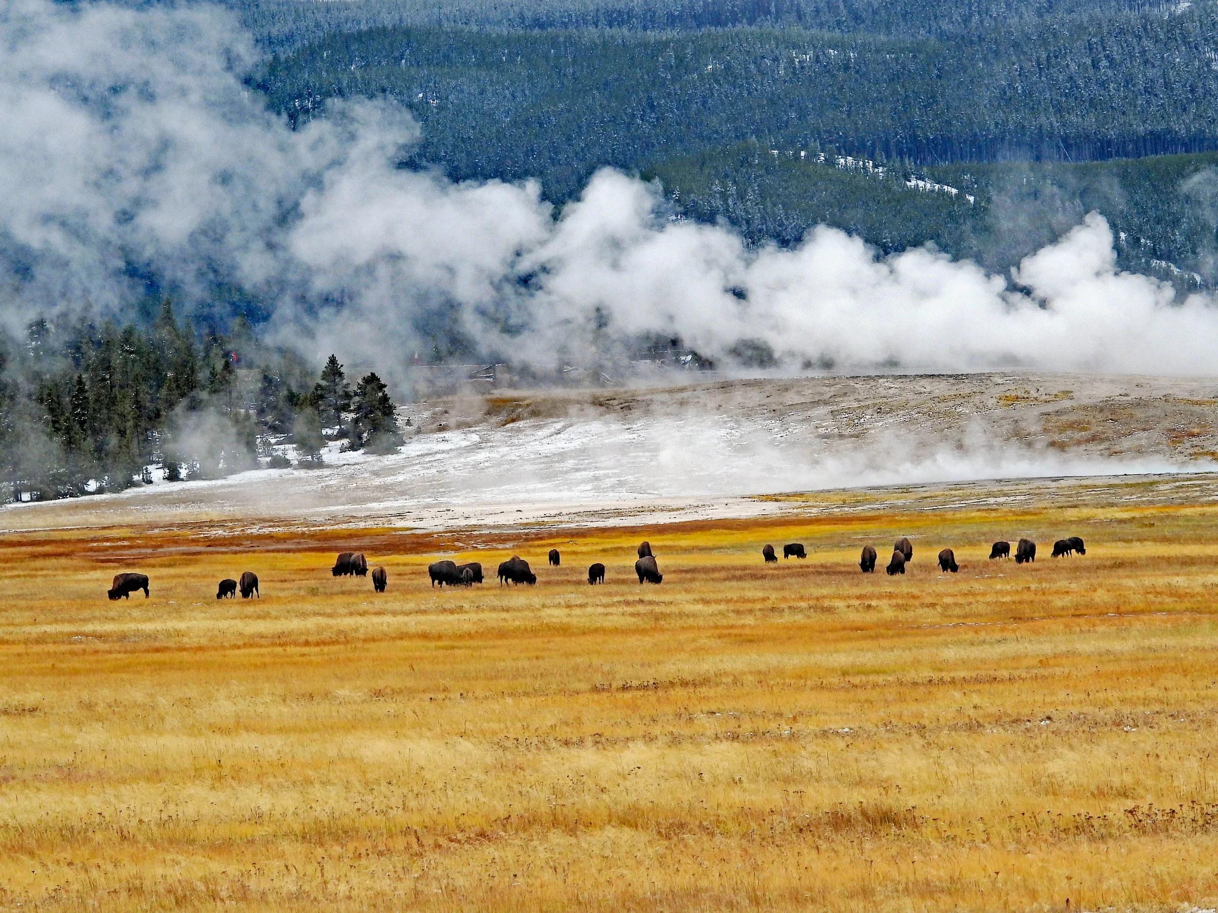 The Lamar Valley is where you want to head to. Beautiful, open plains with mountains in the background and loads of bison. Pace yourself, though, you can get inundated quickly, especially when you find yourself stuck on a road because the bison decided that the roadway was much more comfortable to lie down on than the grass. Then you’ll really be done with them after that point.