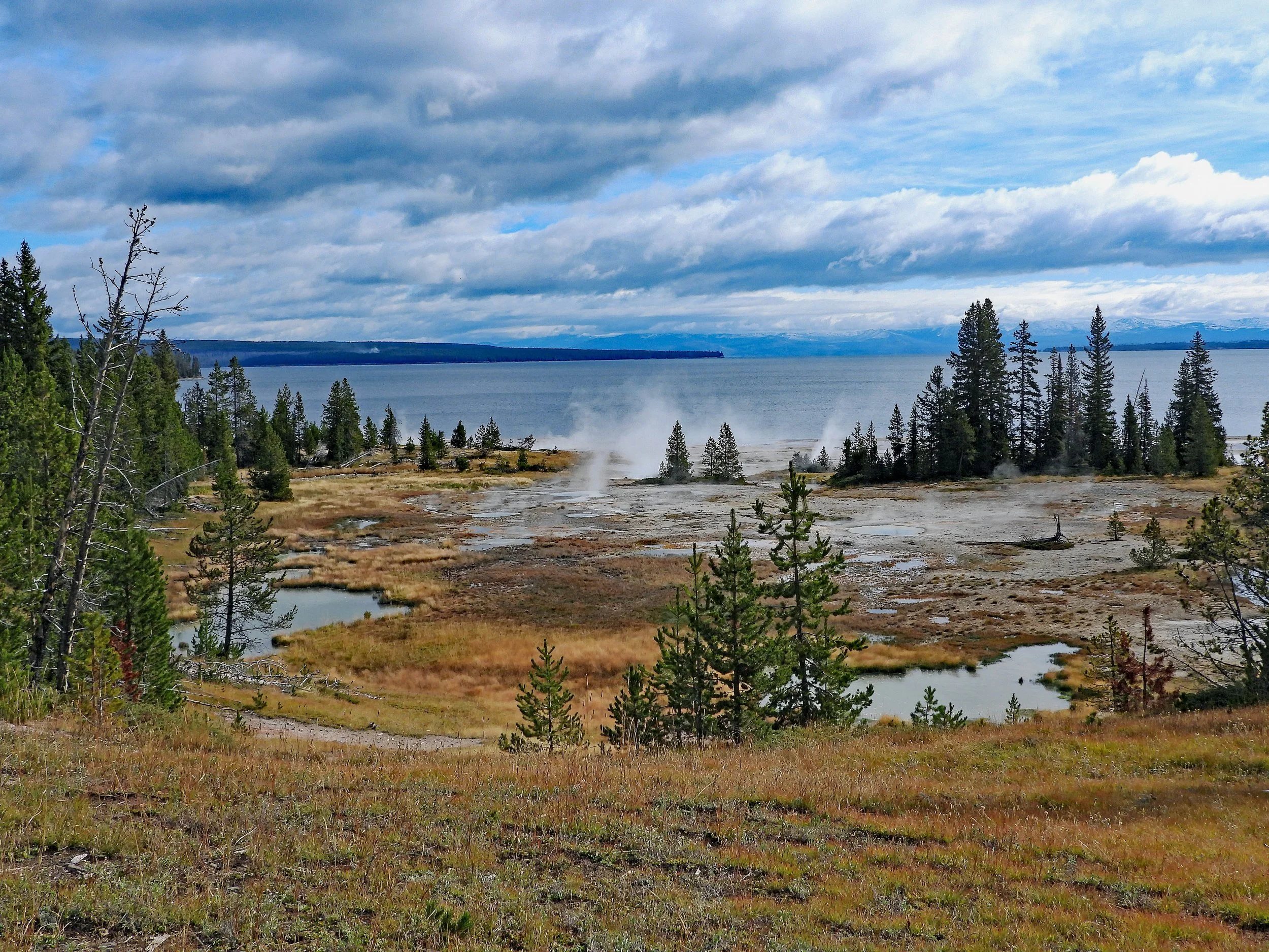Whilst you’re driving, you will see lots, I mean a ton, of thermal pools and lots of steam coming from those thermal pools. In the photo to the left is Yellowstone Lake, a pretty huge body of water that lends to some cool photographic possibilities. If you see a sign for any kind of thermal pool/geyser, go and take a look. If you have the imagination, you can make some of your photos look somewhat, post-apocalyptic, something like a wasteland with the pools and steam and dead trees sticking-up out of the ground, killed by the heat of the sulfur ridden water.
